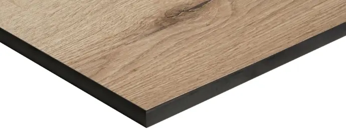 Disponemos referencias de compacto con núcleo coloreado del color del compacto y encimeras de compacto con núcleo negro.