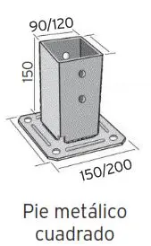 Los pies metálicos son un accesorio para la instalación de estructuras de madera en exteriores. Su función principal es el anclaje y protección de la base del poste de madera del contacto directo con el suelo y la humedad. Fabricados en acero galvanizado para mayor durabilidad, permitiendo el uso en exterior. Disponibles para poste cuadrado y para poste redondo