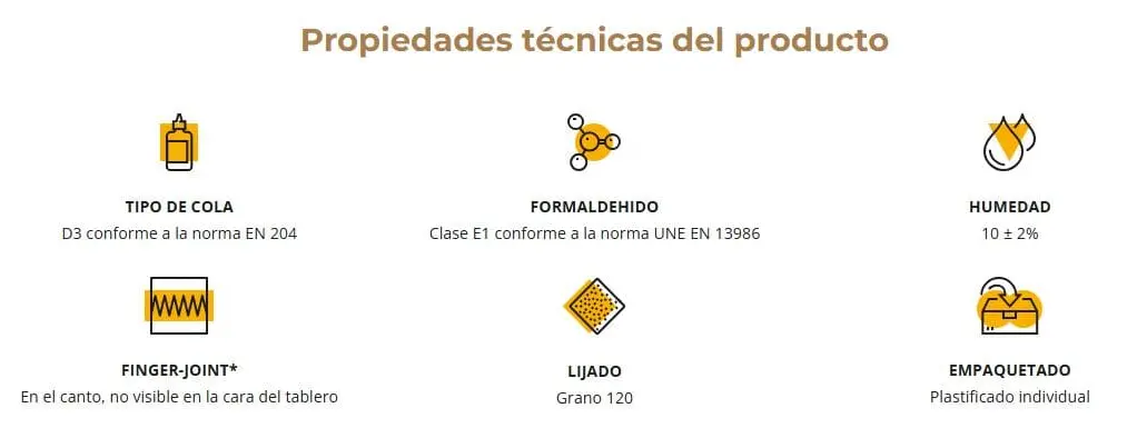 Tablero alistonado de madera maciza de pino flandes, compuesto de piezas encoladas entre sí por la testa, en unión finger (dentada) y posteriormente encoladas al canto largo para confeccionar un tablero resistente, muy estable y con durabilidad.