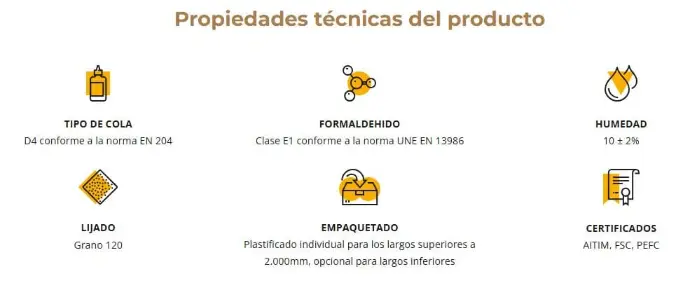 Fácil manipulación, mecanizado y secado. Uso en interior, para la fabricación de mobiliario en general, escaleras...