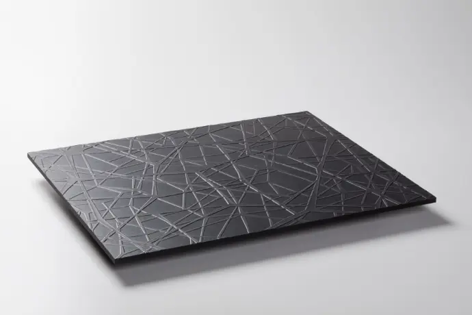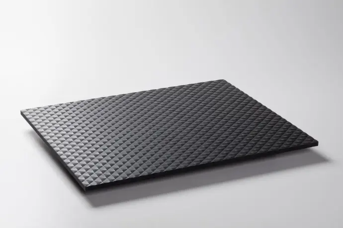 Tablero Fibracolour negro con textura en forma de relieves (sólo en la cara superior, la contracara lisa).