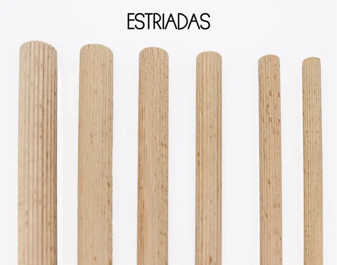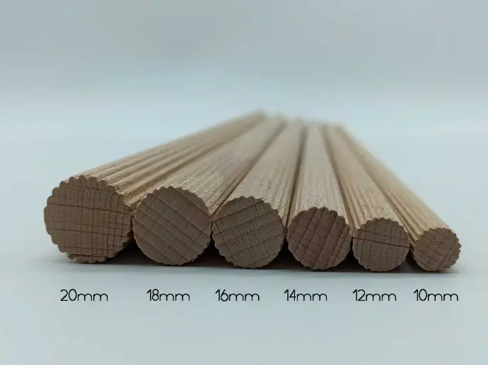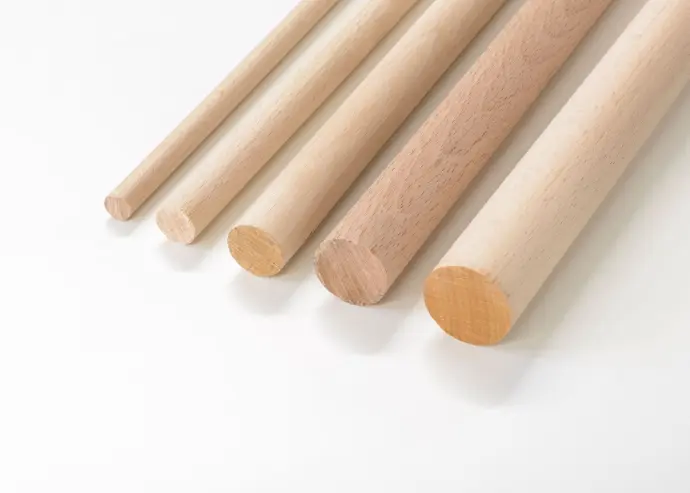 Suministramos varilla redonda maciza de haya de largo 1,00m, con opción de ser lijada o estriada.